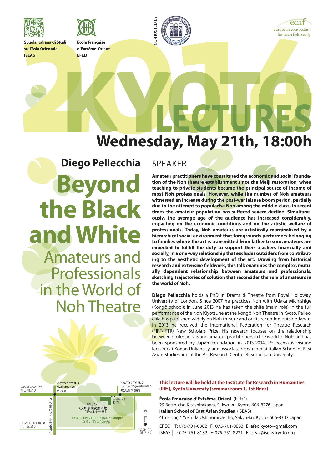 On Wednesday May 21st 2014 at 18:00 I will present my current research in an event part of the Kyoto Lectures series, organised by the ISEAS/EFEO. The lecture will be held at the Institute for Research in Humanities (IRH), Kyoto University (seminar room 1, 1st floor). Free entry, booking not required.