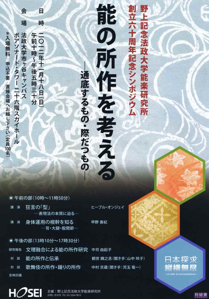Hosei University Noh Research Institute – 60th Anniversary Symposium