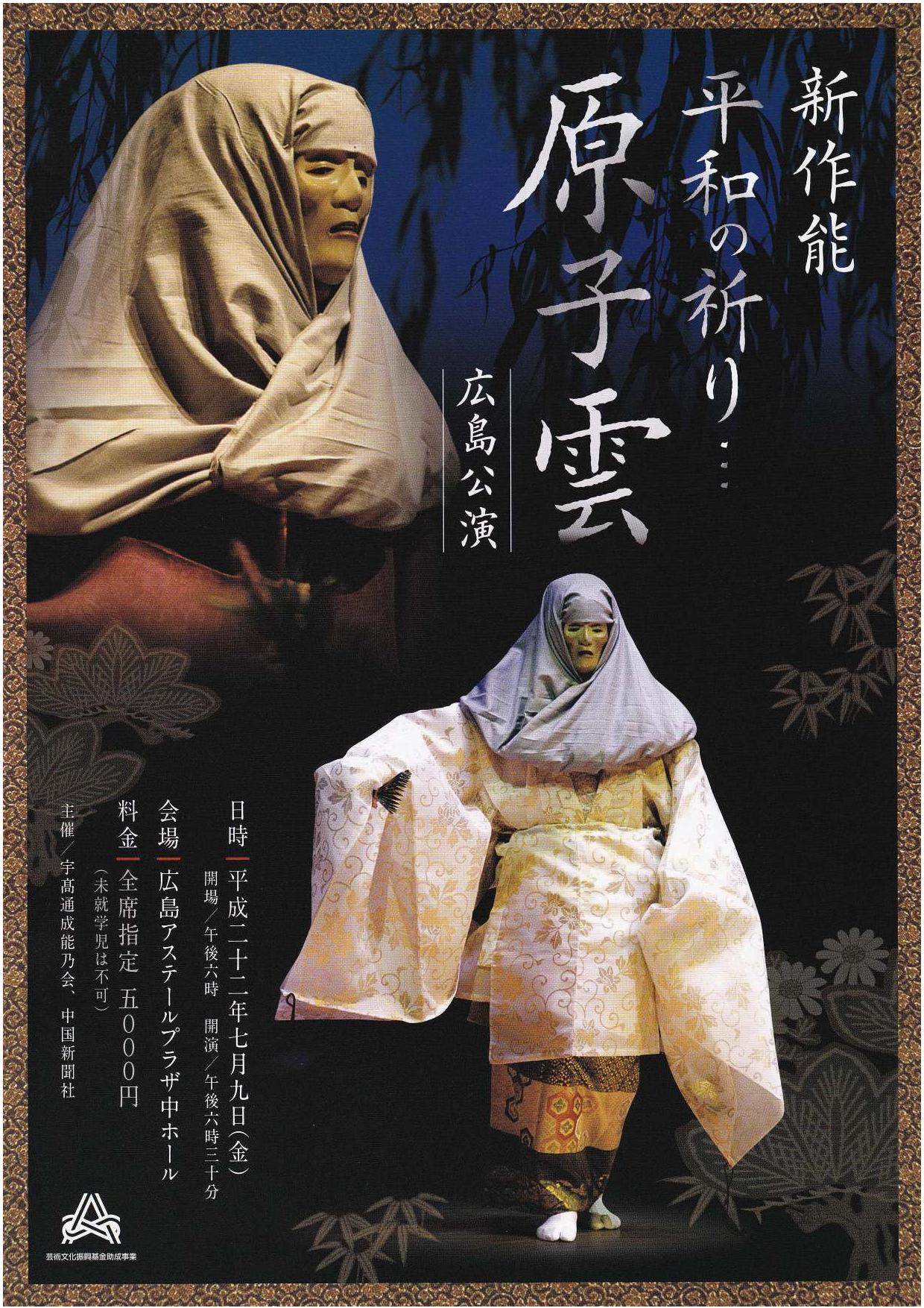 Yesterday (July 9th 2010) Udaka Michishige‘s Genshigumo (原子雲, a newly-written Noh play on the atomic bombing of Hiroshima and Nagasaki) was performed in Hiroshima for the first time. I had the chance to follow Udaka-Sensei, and take part in the introductory speeches of the performance, reading messages from members of the International Noh Institute around the world, and from the William J. Clinton Foundation.