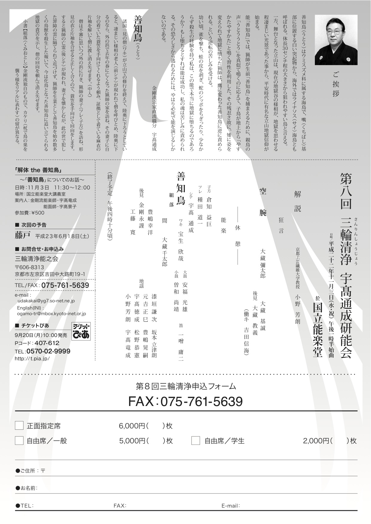 This year the National Noh Theatre in Tokyo is celebrating its 30th anniversary. The article on the first page of the February issue of the Nogaku Times reminded me of something I wanted to blog about a month ago or so, after a friend (journalist Okada Naoko) gave me a heads up about it: the first performance to open the special programme will be philosopher Umehara Takeshi’s ‘super-Noh’ Zeami (April 15 2013), featuring Kanze Actor Umewaka Gensho. The play was recently performed at the Kanze Theatre in Kyoto, though I could not go (it was a Wednesday, and I had okeiko).