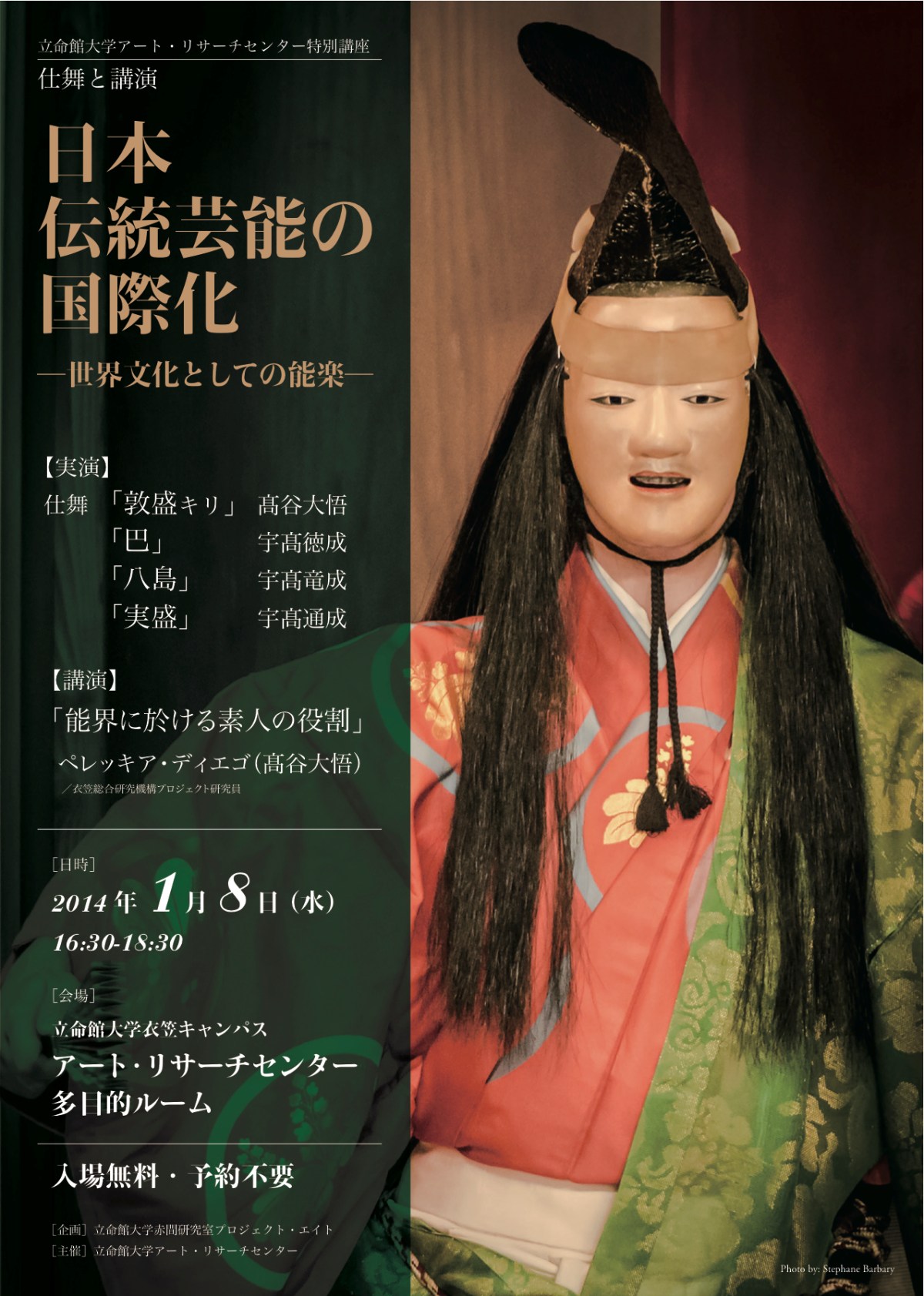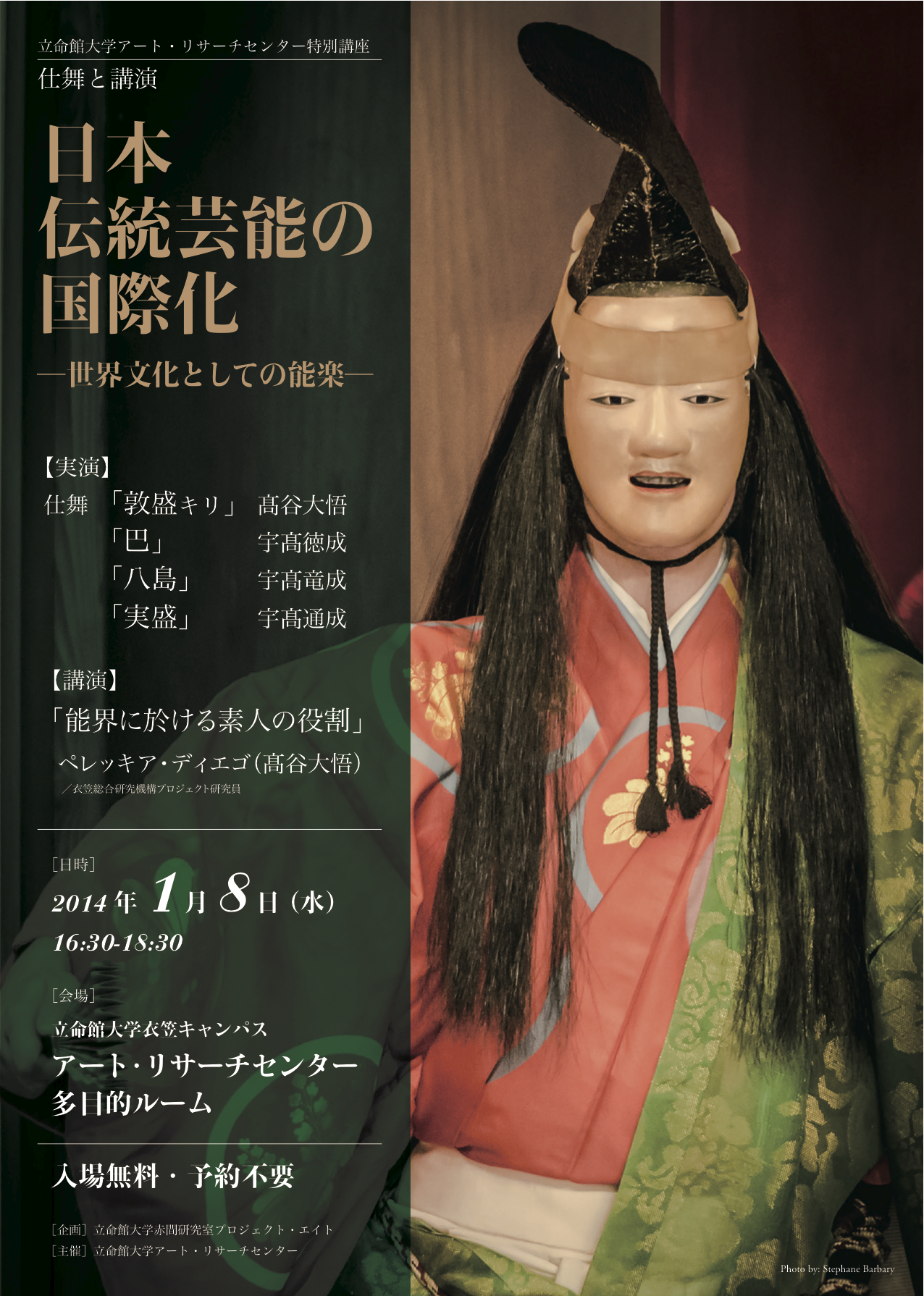 On January 8th 2014 the ARC Art Research Centre at Ritsumeikan University will host the event ‘Internationalisation of Japanese Performing Arts – Noh as Culture of the World’. The event combines performance, theory and discussion. See below for details (in English and Japanese).